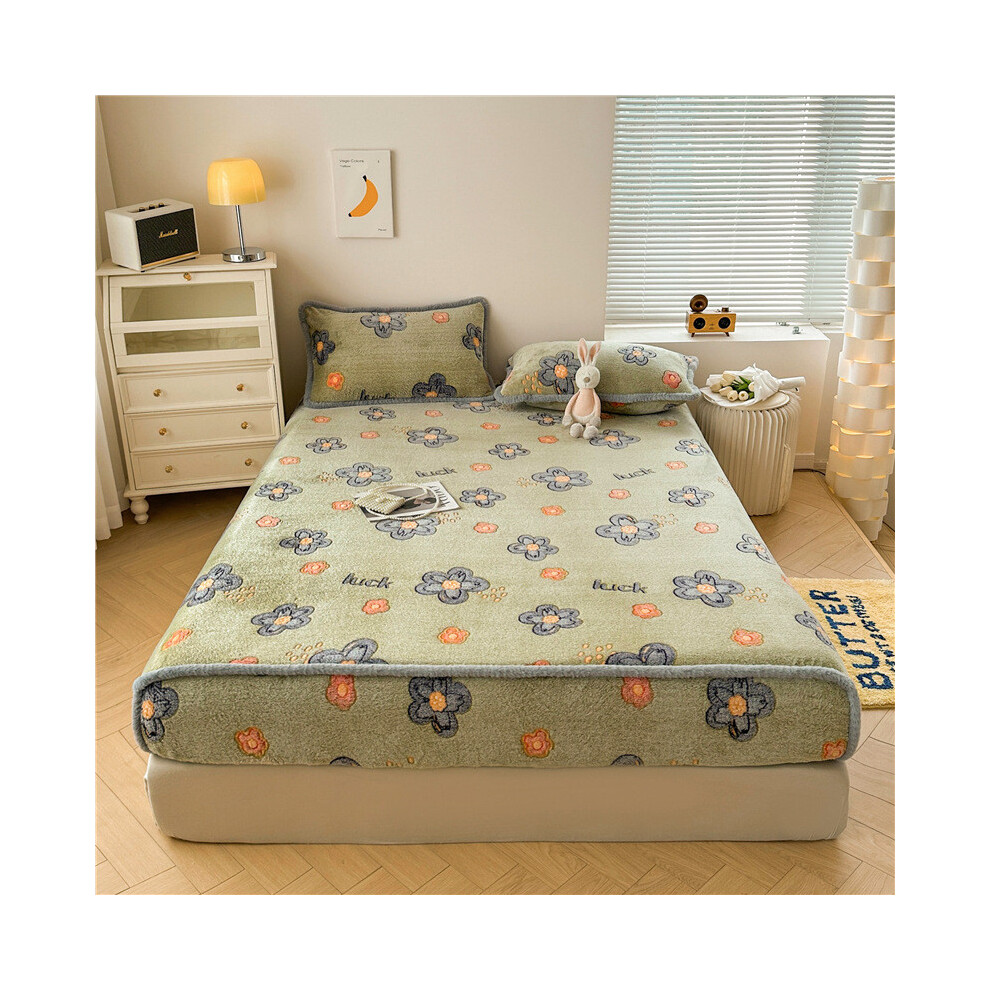 (Flowers, 180x200cm) Lotso Rainbow Strawberry Pattern Plush Bedspread Pillowcase Cover Set Protective