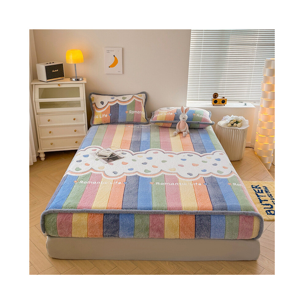 (Lotso, 180x200cm) Lotso Rainbow Strawberry Pattern Plush Bedspread Pillowcase Cover Set Protective