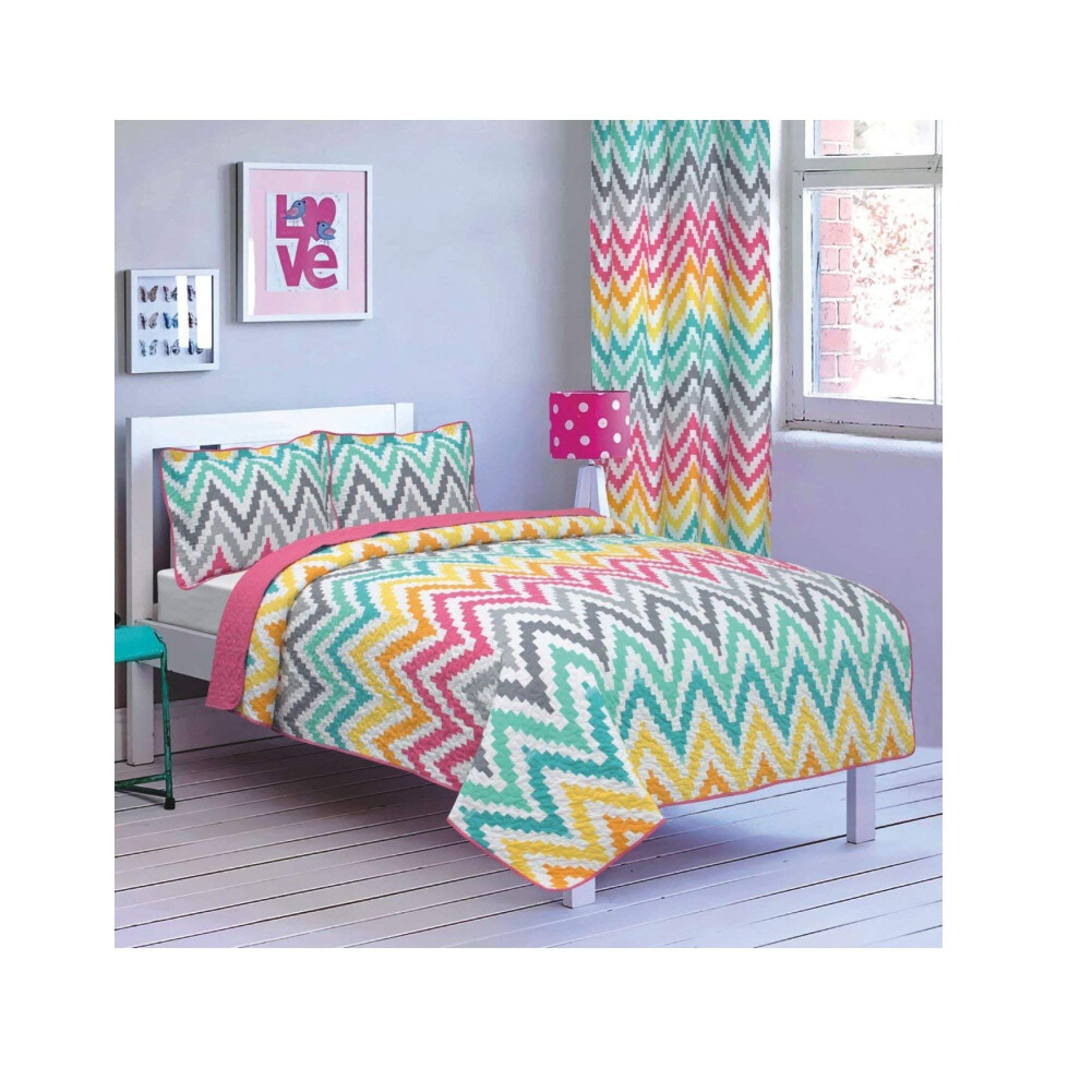 All American Collection New 2pc Printed Modern Bedspread Coverlet Set (Twin Bedspread Zig-Zag Rainbow)