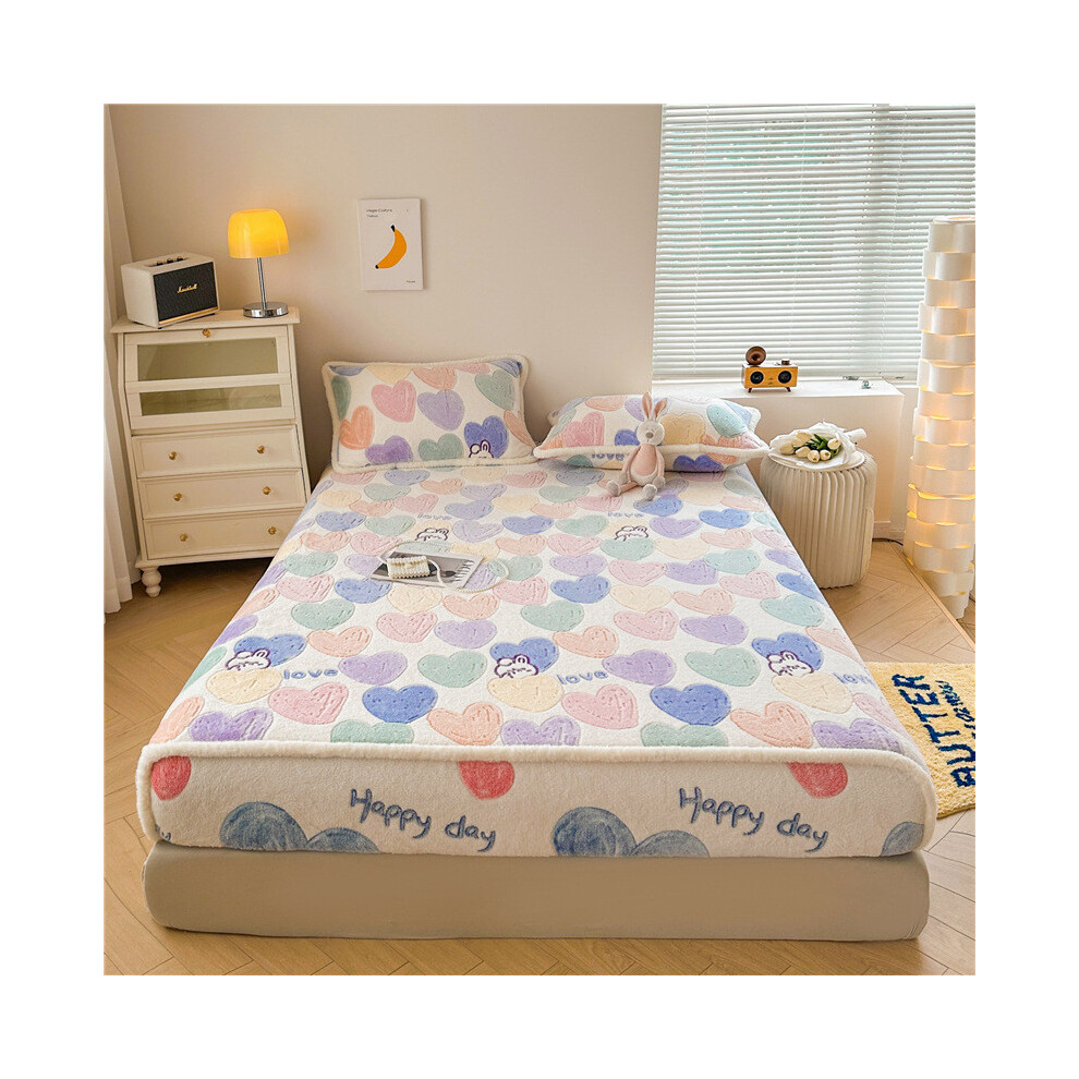 (Loving Heart, 180x200cm) Lotso Rainbow Strawberry Pattern Plush Bedspread Pillowcase Cover Set Protective