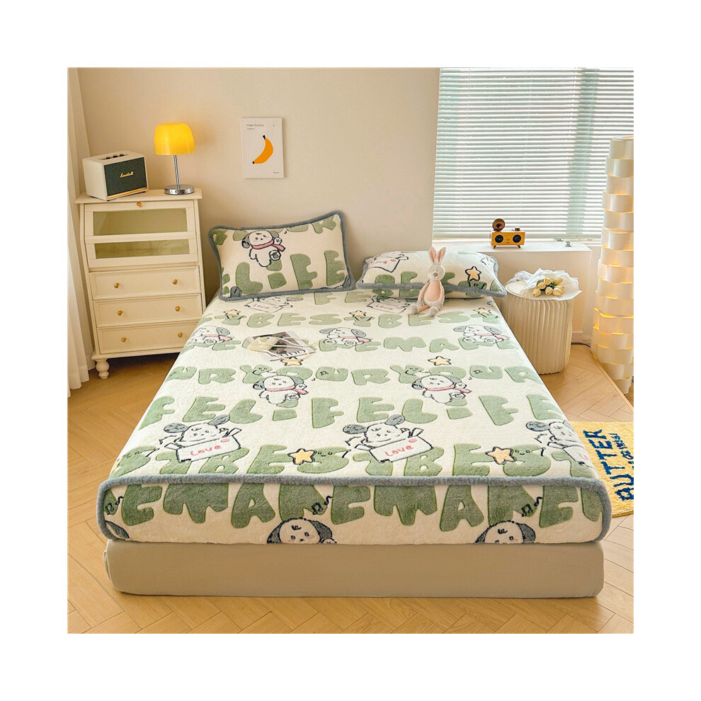 (Dog, 180x200cm) Lotso Rainbow Strawberry Pattern Plush Bedspread Pillowcase Cover Set Protective
