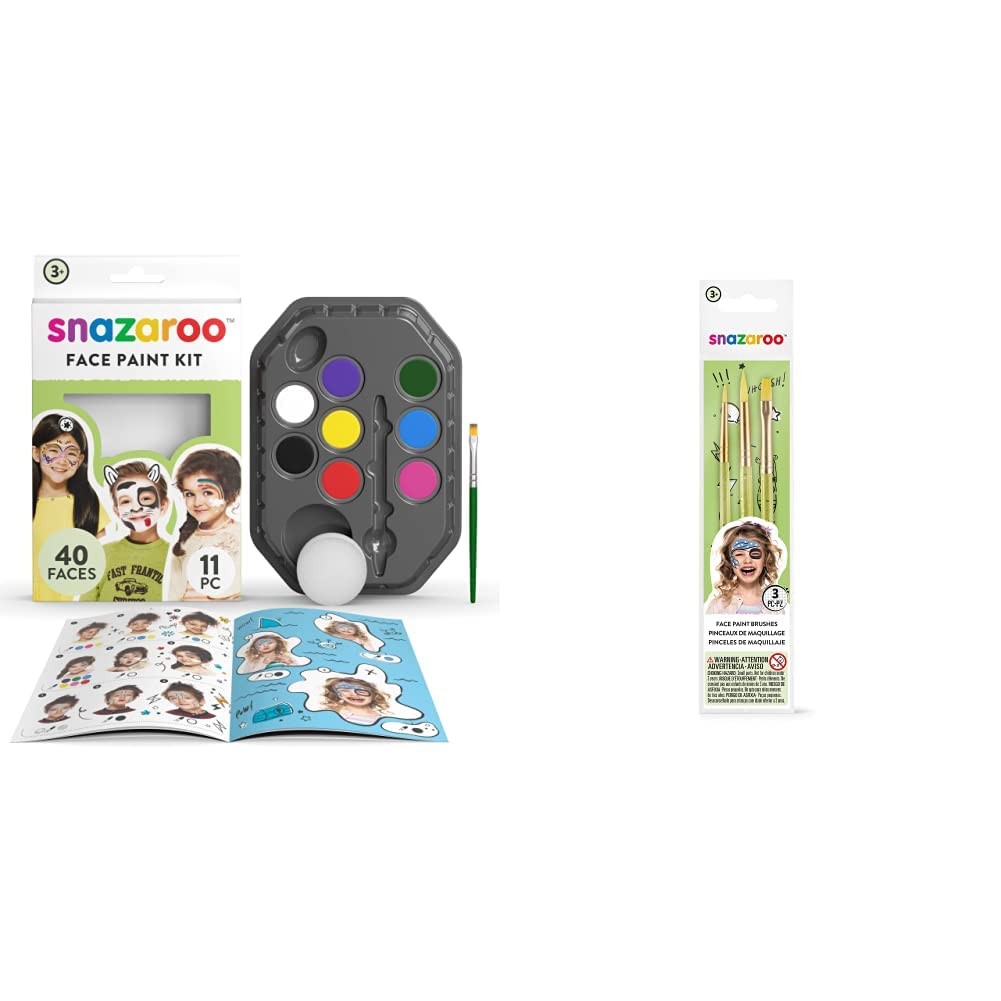Snazaroo SZ1180102 Rainbow Face Paint Palette Kit & 1192505US Face Paint Brush Set-3 Pcs, Green