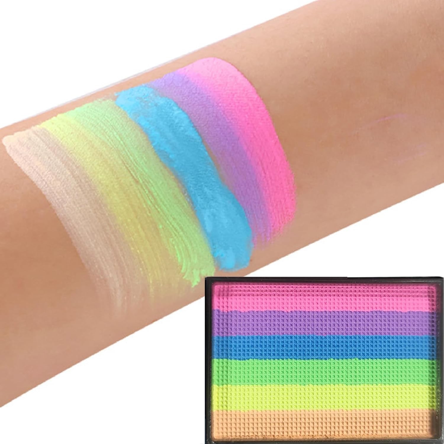 Macaron Rainbow Face Paint Palette - 6 Bright Colors, Water-Based & Easy to App