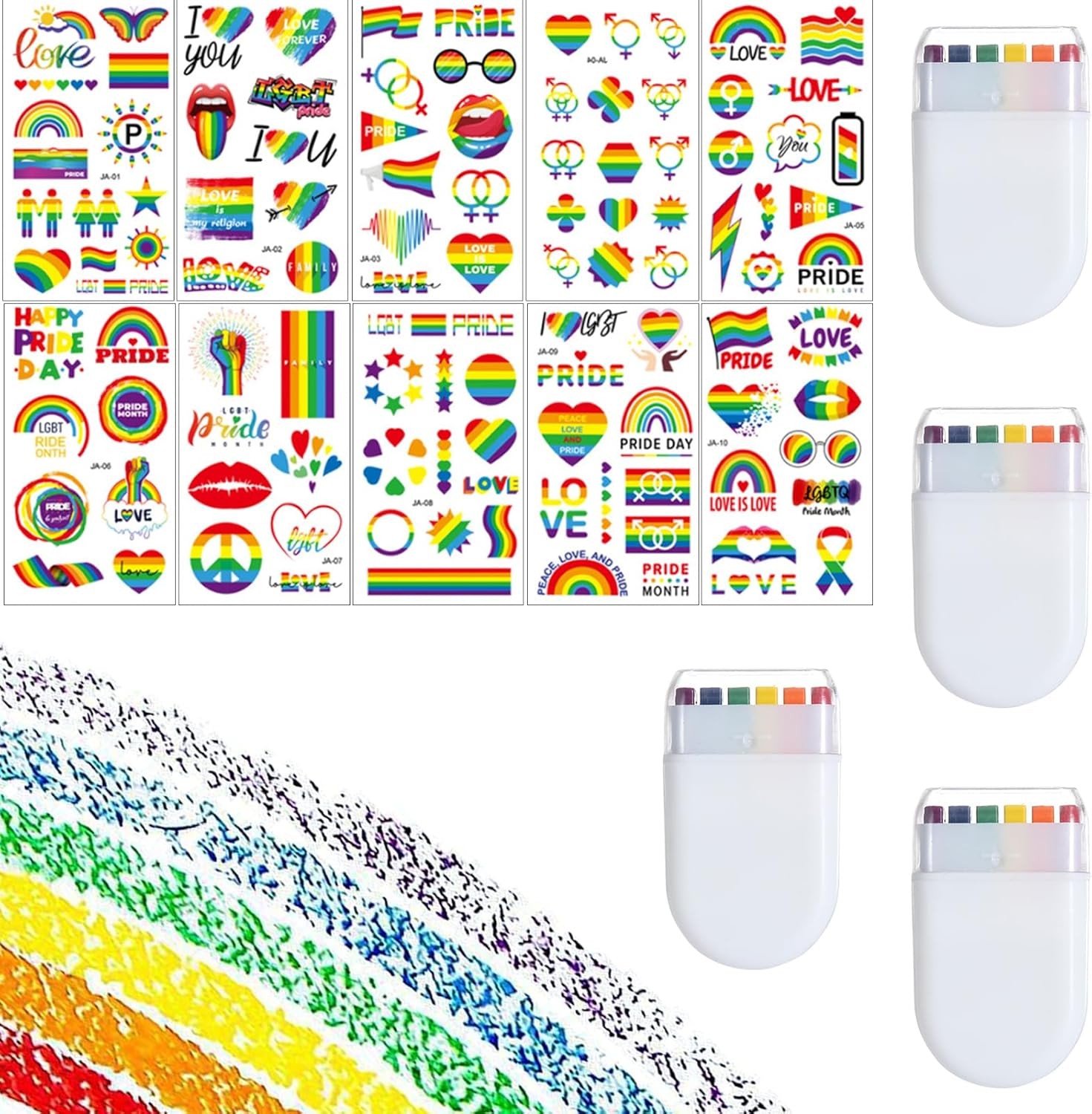 Rainbow Face Paint Kit, 4pcs Rainbow Pride Flag Face Paint with Pride Stickers,