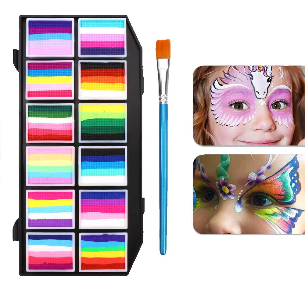 12-Color Water-Soluble Rainbow Face & Body Paint – Halloween Stage Makeup Kit