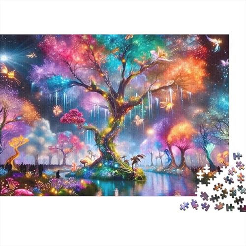 Fantasy Tree Glow Vibrant Color 1000 Piece Jigsaw Puzzle for Adults Rainbow Tree Fairies Magical Forest Premium Thick Sturdy Challenging Hard Stress Relief 52x38cm/1000pcs
