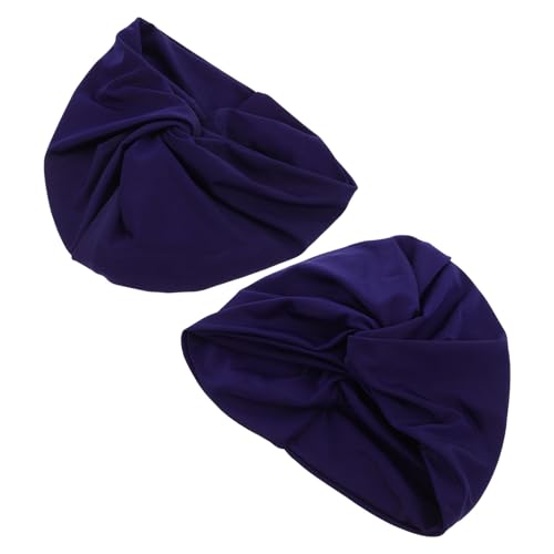 GRIRIW Pleated Swim Cap for Women Dark Blue Turban Style Bathing Hat with Ear Protection High Elasticity Anti-slip Design Suitable for Long and Short Hair Swimming