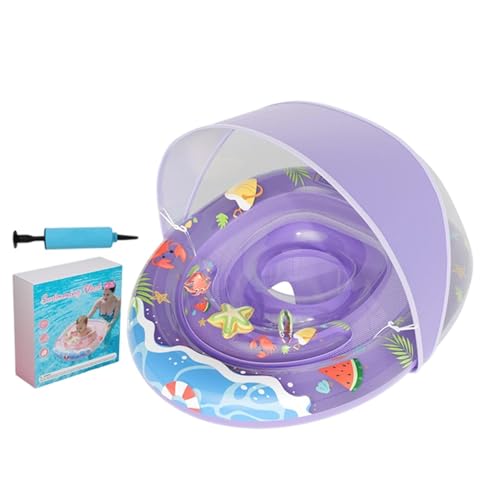 Safety Sunshade Float, Anti Tip Children's Swim Ring, 32.5 Inches Tube with Protective Canopy, High Buoyancy Pvc, Nautical Style with Stable Base, Swim Trainer for Pool and Beach