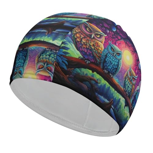 Rainbow Owls Moon Swim Cap for Women Men High Elasticity Swimming Hat Fit Long And Short Hair