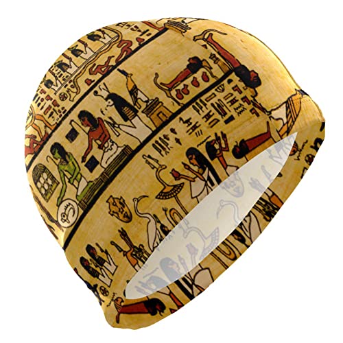 Oyihfvs Old Egyptian Papyrus and Hieroglyph Retro Vintage Style Custom Men Swim Cap, High Elasticity Swimming Cap, Stylish Lightweight Swim Hat for Adult Men Teens Swimming Water Sports