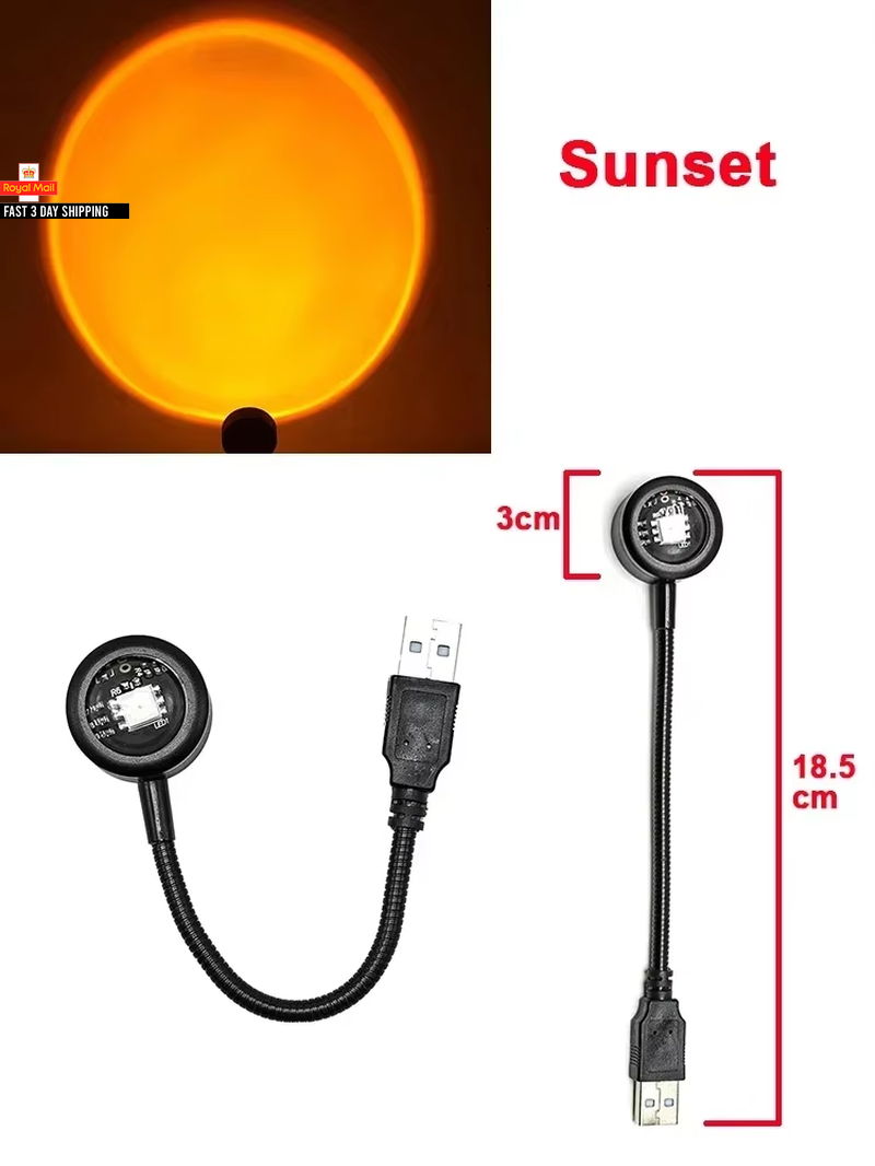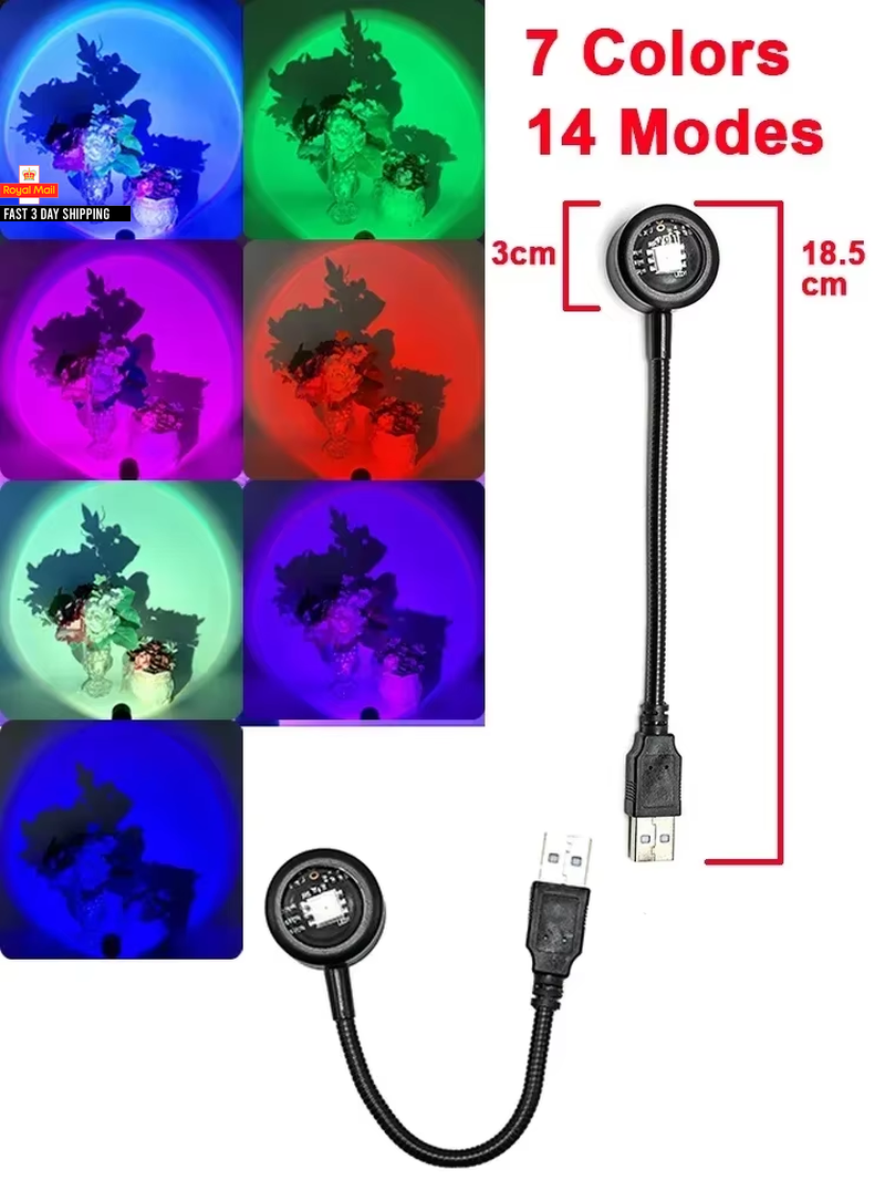 (SUNSET) USB Rainbow Sunset Red Projector Led Night Light