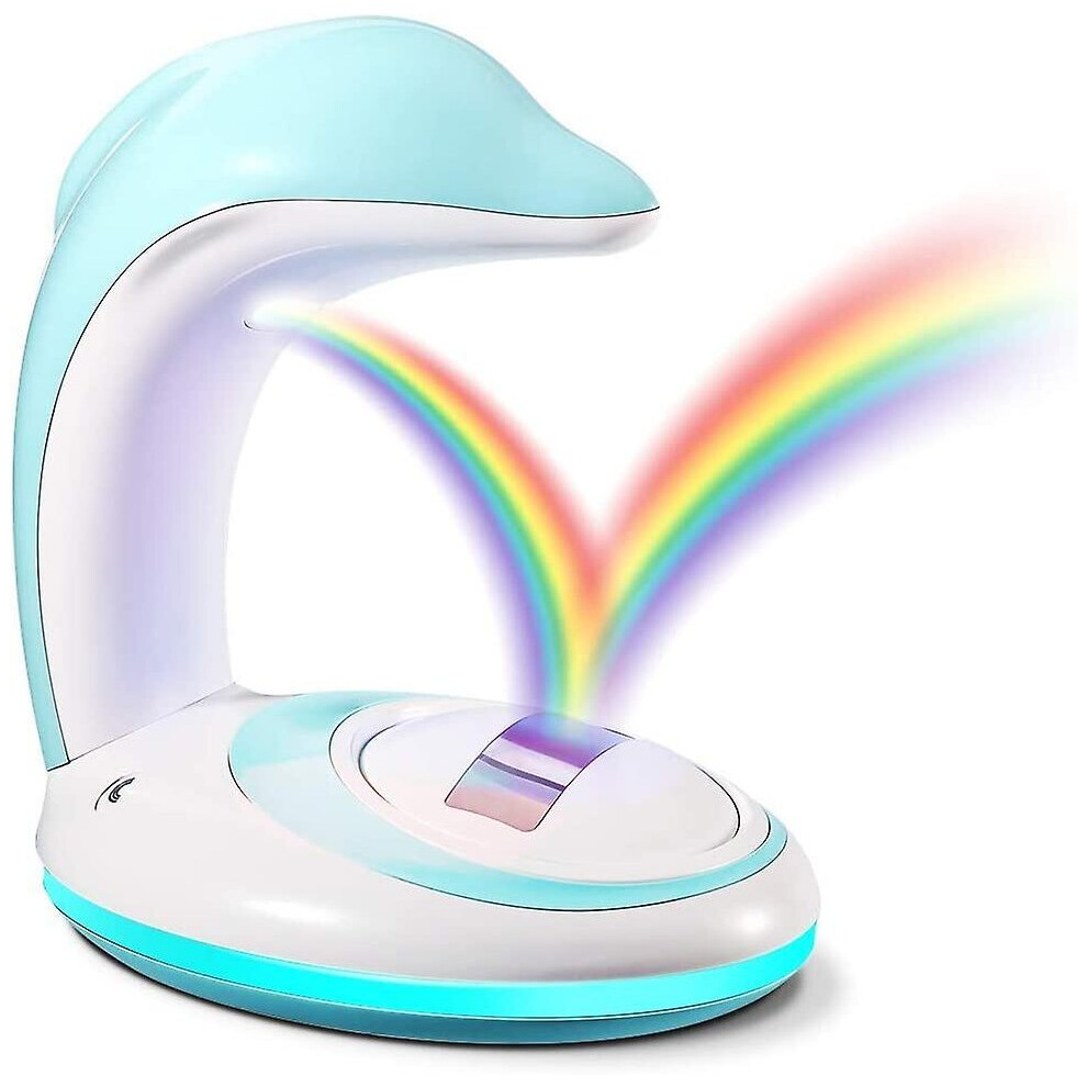 (Blue) LED Lamp Night Light USB Rechargeable Rainbow Dolphin Projector Romantic Atmosphere Home Party Decoration