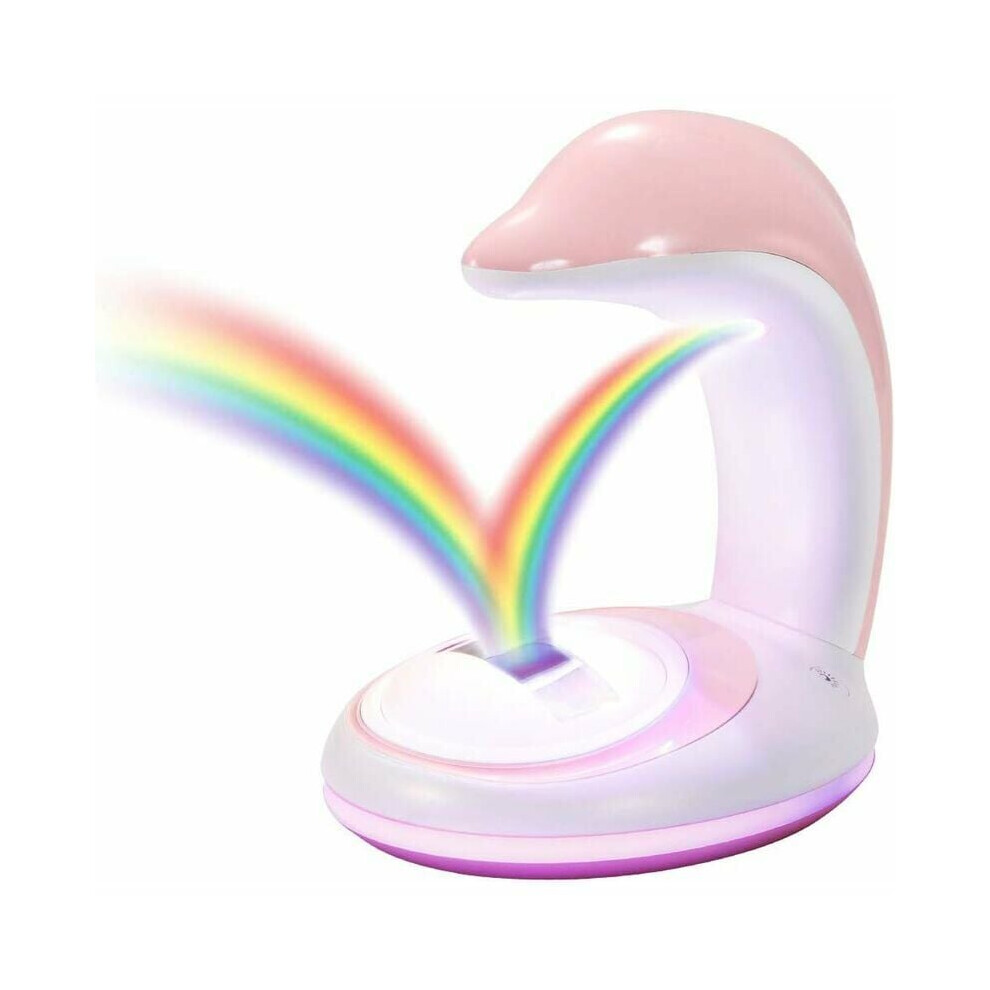 (Pink) LED Lamp Night Light USB Rechargeable Rainbow Dolphin Projector Romantic Atmosphere Home Party Decoration