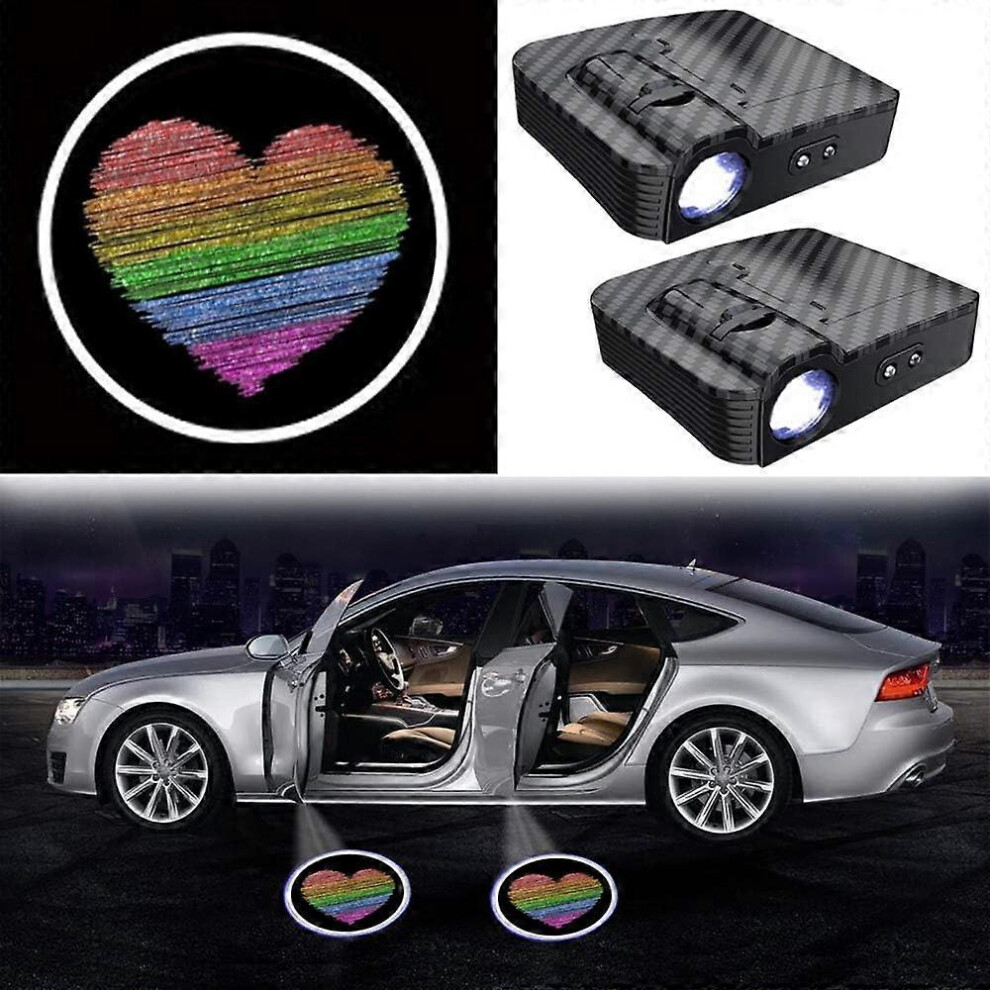 (As show, One size) Car Door Light LED Logo Projector Rainbow Love, Car Courtesy Light Welcome Shadow Ghost Light for All Cars, 2PCS No Need Magnet Se