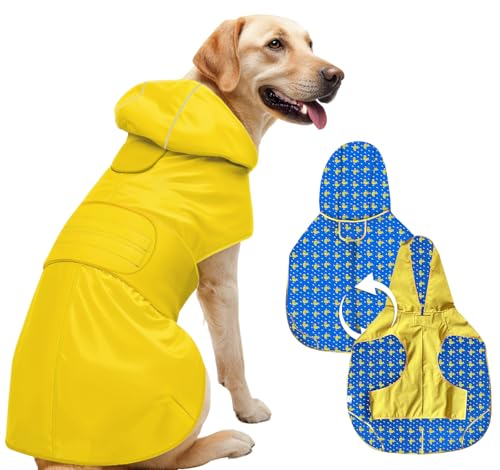FALUCKYY Dog Raincoat Reversible Double-Sided,Waterproof Adjustable Reflective Dog Rain Jacket with Hood & Leash Hole,Pet Rain Hat,Puppy Raincoat,Windproof Snowproof Poncho for Dogs (S)