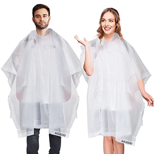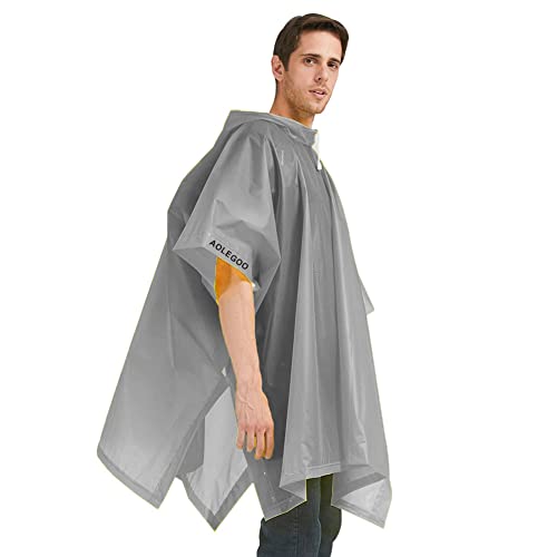 Aolegoo 2 pack of Rain Ponchos, EVA Portable Adults Waterproof Ponchos, Reusable raincoat with Hoods for Camping, Hiking Travel, Amusement Parks, Festival Mac (Gray)