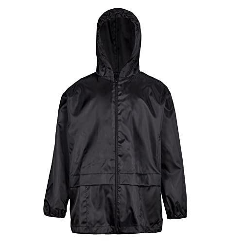 Style It Up Unisex Kids Boy Girl Waterproof Plain Raincoat Kagouls Jacket Hooded Cagoul Mac (BLACK - 34, 13 Years)
