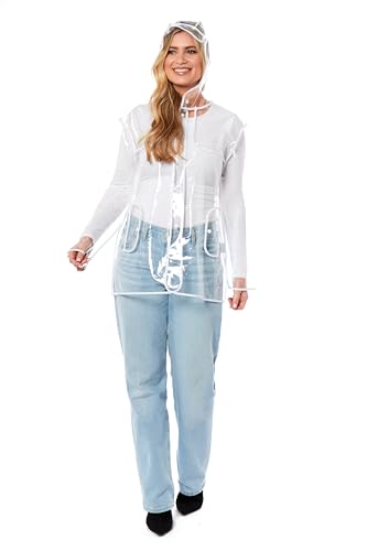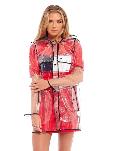 shelikes Womens Ladies Girls Transparent Clear Black Waterproof Raincoat Rain Mac [White L/XL (UK 12/14)]