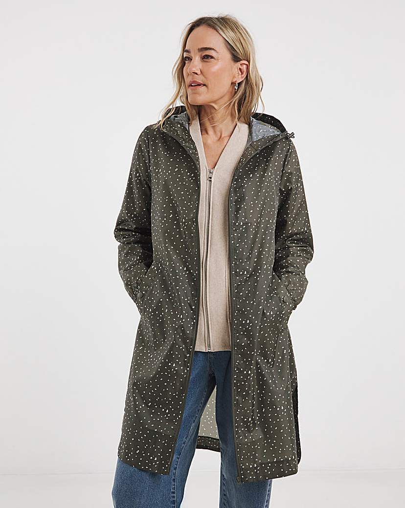 Khaki Spot Longline Pac A Mac Raincoat Khaki Print - JD Williams - Size: 12/14