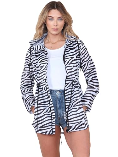 kraftd Womens Raincoat Ladies Rain Jackets Waterproof Showerproof Lightweight Hooded Rain Mac (Ella-Zebra, M)