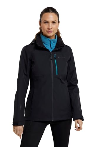 Mountain Warehouse Rainforest Womens Jacket -Waterproof Rain Coat with Pockets & Adjustable Hem, Mesh lined, Packaway Hoodie - For Autumn, Winter & Outdoors Jet Black Women's Size 6