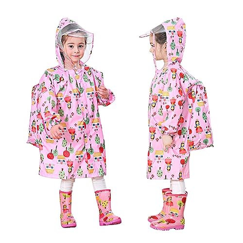 jieGorge Toddler Kids Rainwear with School Bag Cover Raincoat Waterproof Hooded Rain Jacket Lightweight Poncho Reusable Rainwear Cute Cartoon Pattern Rains Poncho for School Pink