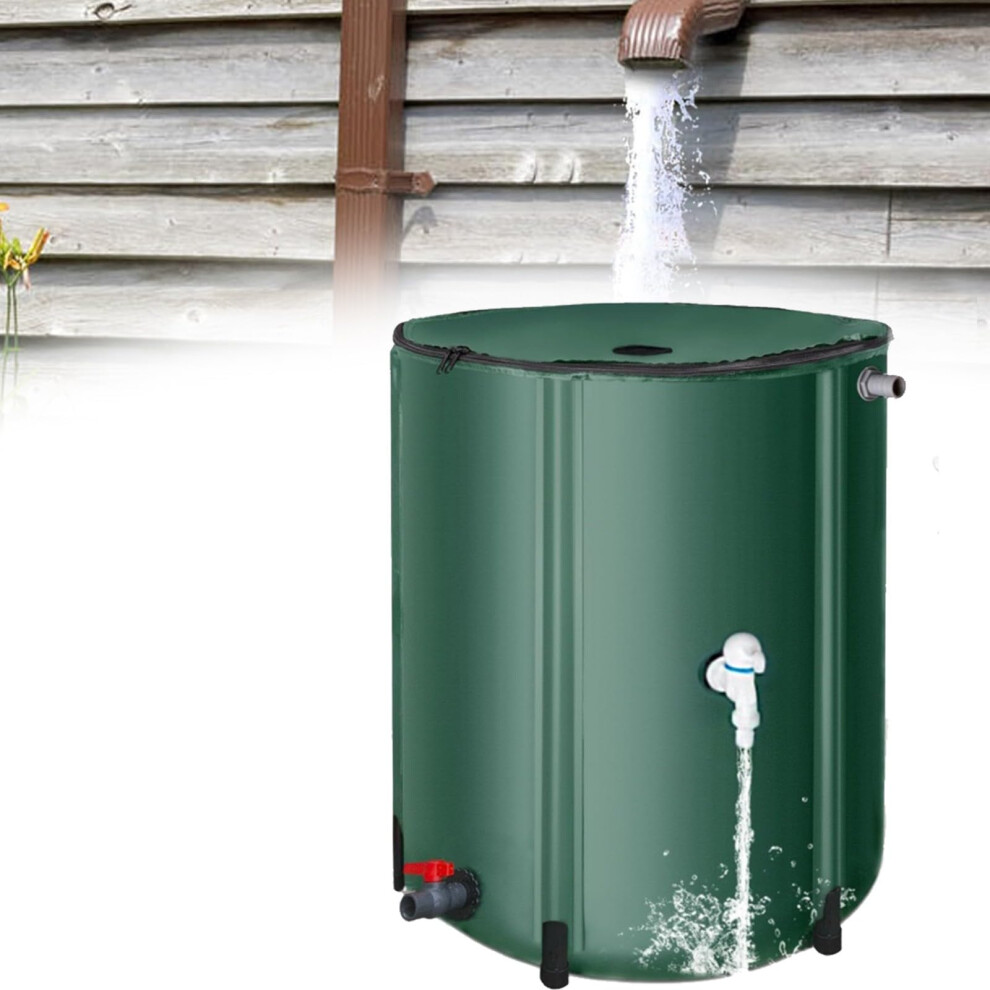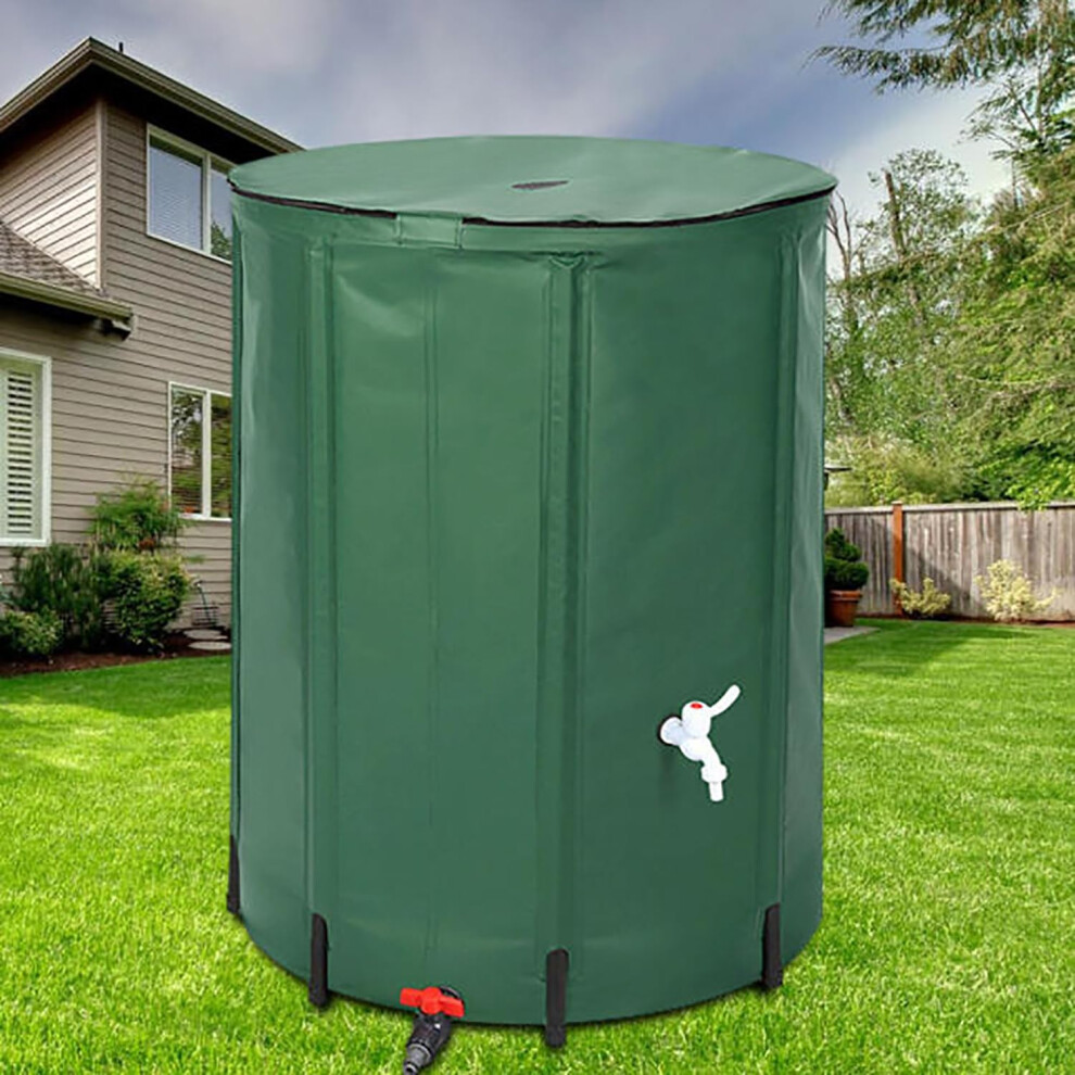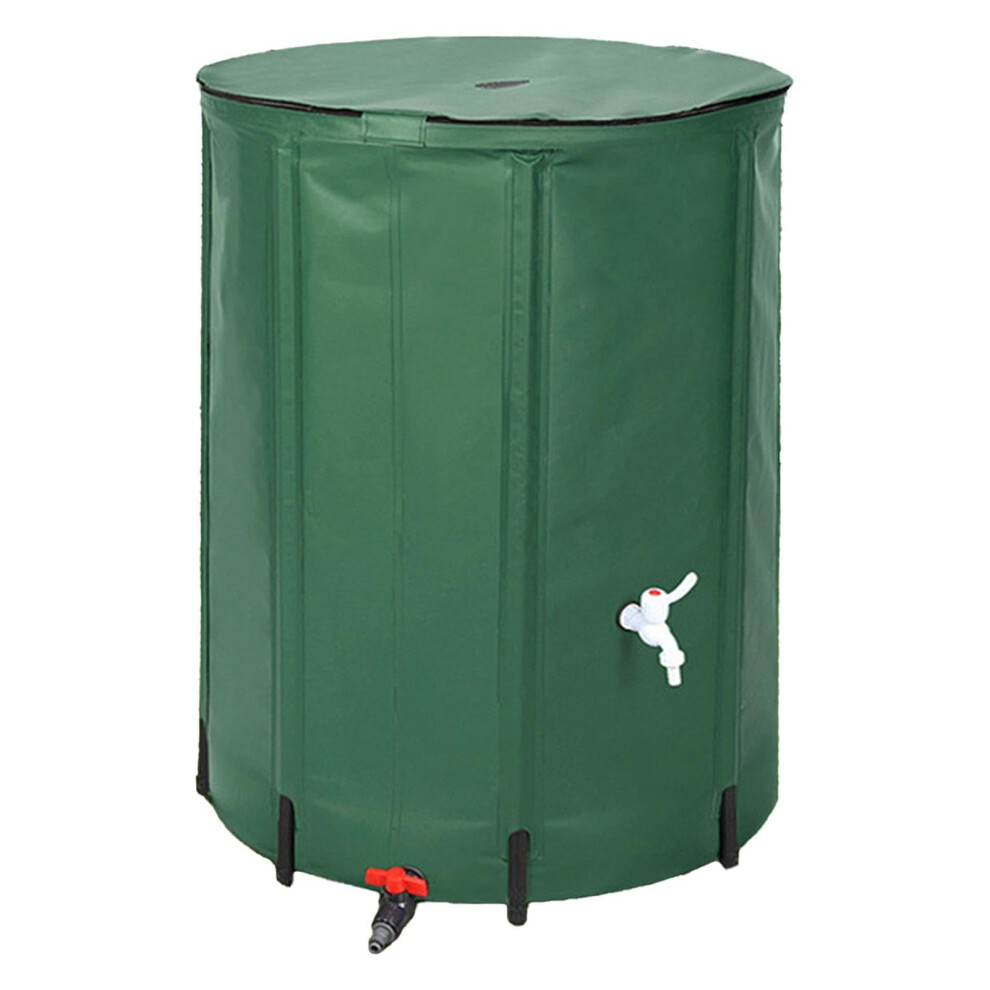 Foldable Water Butt Green Water Catcher with Overflow Kit PVC Garden Lawn Rain Barrel Rainwater Collection System 100L