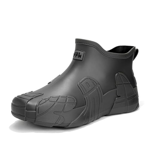 Men's Rain Shoes Stylish Ankle Boots Slip Durable Outdoor Rubber Footwear For Rainy Days (Grey, 7.5)