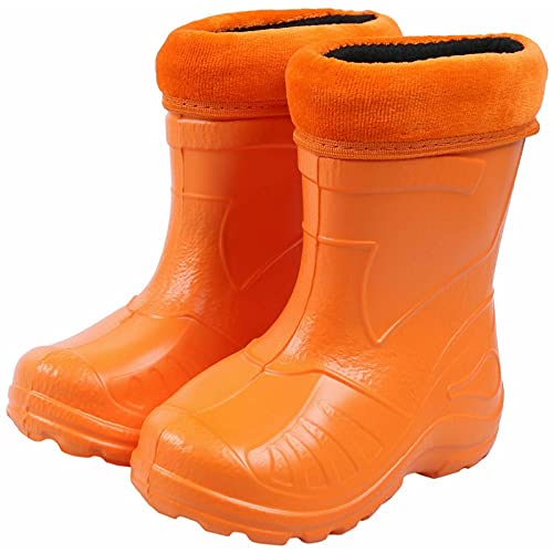SolaDirect Orange Ultra Light EVA Kids Girls Boys Wellies Rainy Snow Wellington Boots Very Warm Liners (7.5 UK/EU 25 Toddler)
