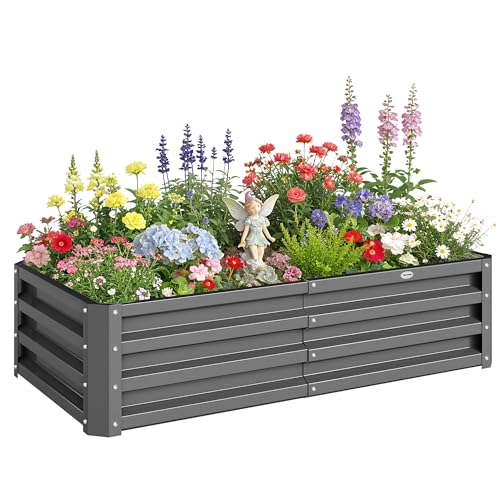 Outsunny 2 Tier Galvanised Raised Garden Bed Planter Box Open Bottom Dark Grey