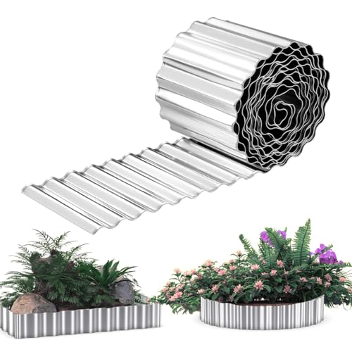 10 IN x 20 FT Metal Lawn Edging Borders,Corrugated Galvanized Garden Edging Border,Landscape Edging,Flexible Long Strips DIY Edging for Vegetables Raised Bed, Flower Tree Surrounds -Silvery