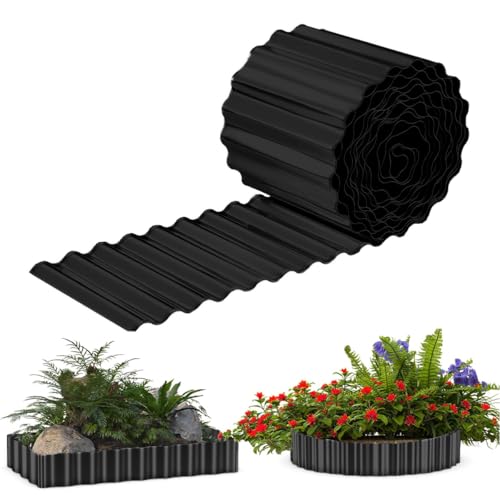 6 IN x 40 FT Metal Lawn Edging Borders,Corrugated Galvanized Garden Edging Border,Landscape Edging,Flexible Long Strips DIY Edging for Vegetables Raised Bed, Flower Tree Surrounds -Black