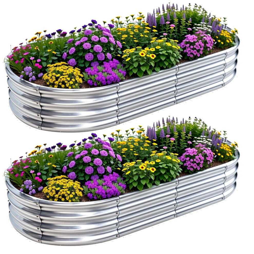 KINI MOX 2Pcs Raised Garden Bed Galvanized Raised Garden Boxes Outdoor Planter Box Planter for Vegetables Flowers Herb GG2 (Oval, 4x2x1 FT)