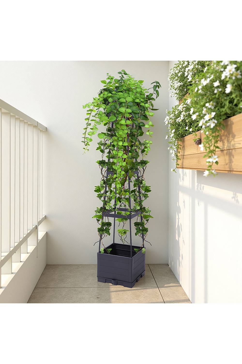 Polypropylene Planter Boxes For Urban Gardens Concrete Rooftop Patio, Raised Garden Beds With Larger Soil Capacity For Better Plant Growth