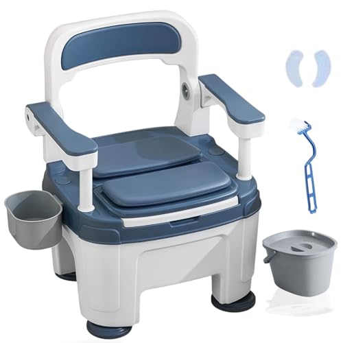 SAYEYBU Bedside Commodes, Mobile Adult Toilets, Toilet Seat with Handles, Portable Toilets with Padded Seat and Backrest, Adjustable Height Easy to Assemble, for Seniors Disabilities Elderly,Blue