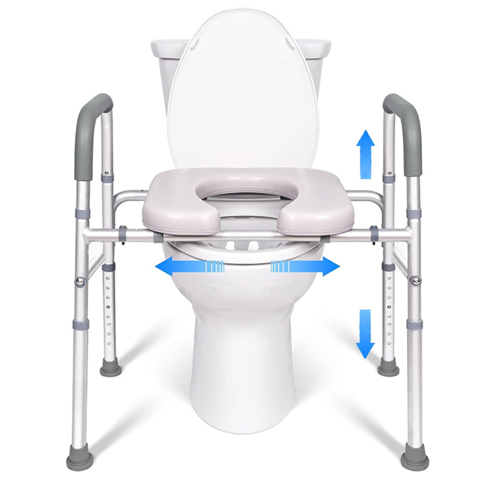 Raised Toilet Seat with Adjustable Height and Padded Handles for Elderly and Disabled