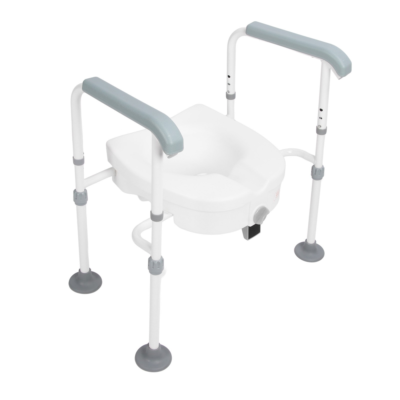 Raised Toilet Seat with Handles, Adjustable Width Height Risers for Seniors
