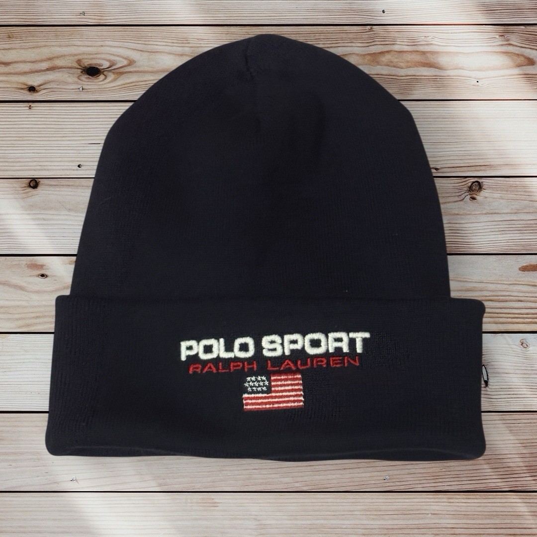 Polo Sport Ralph Lauren Logo Beanie Hat Black One Size Cotton Casual Capsule