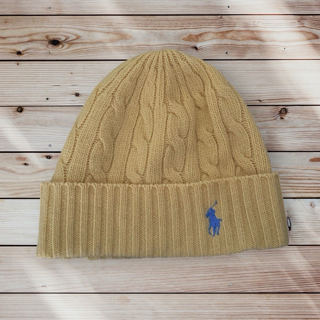 Polo Ralph Lauren Classic Cable knit Beanie Wool One Size Yellow Logo RRP £79