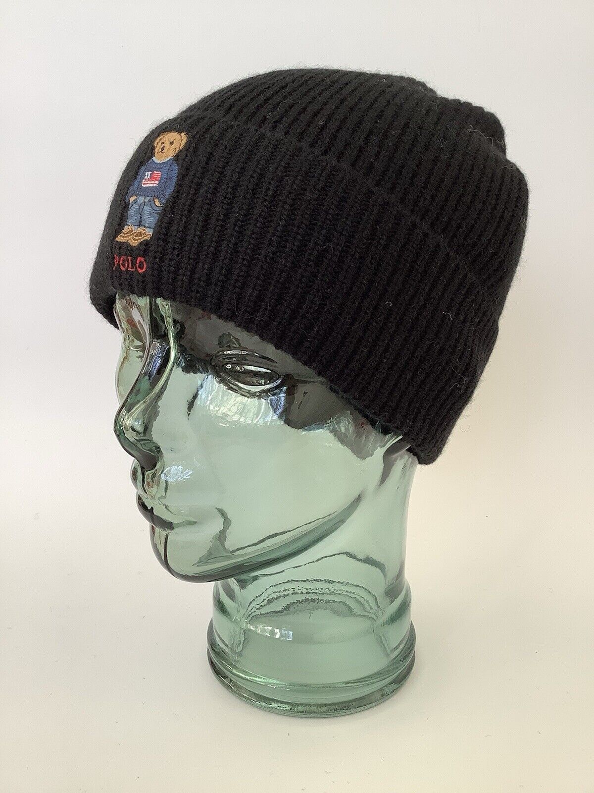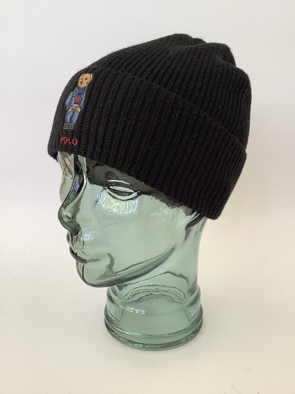 New Polo Ralph Lauren ‘Solid Denim Bear’ Black Wool- & Acrylic-Rich Beanie