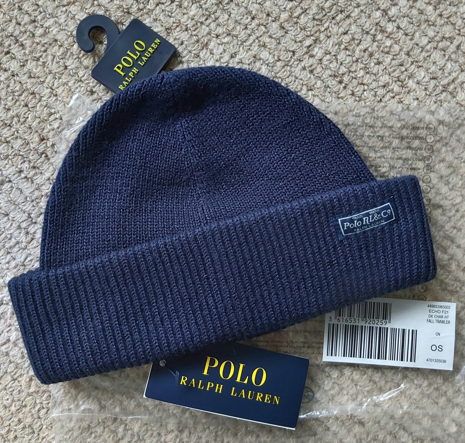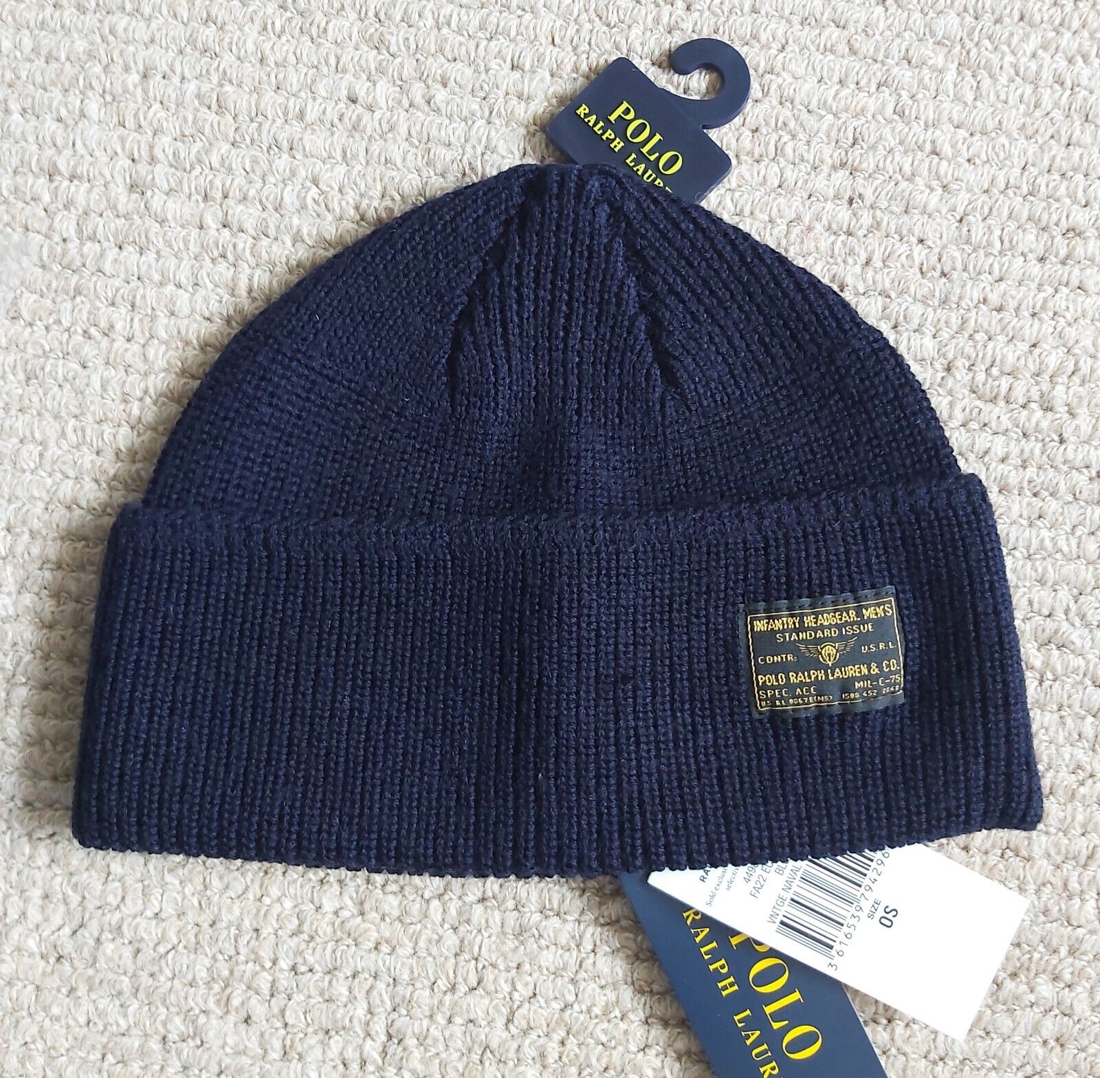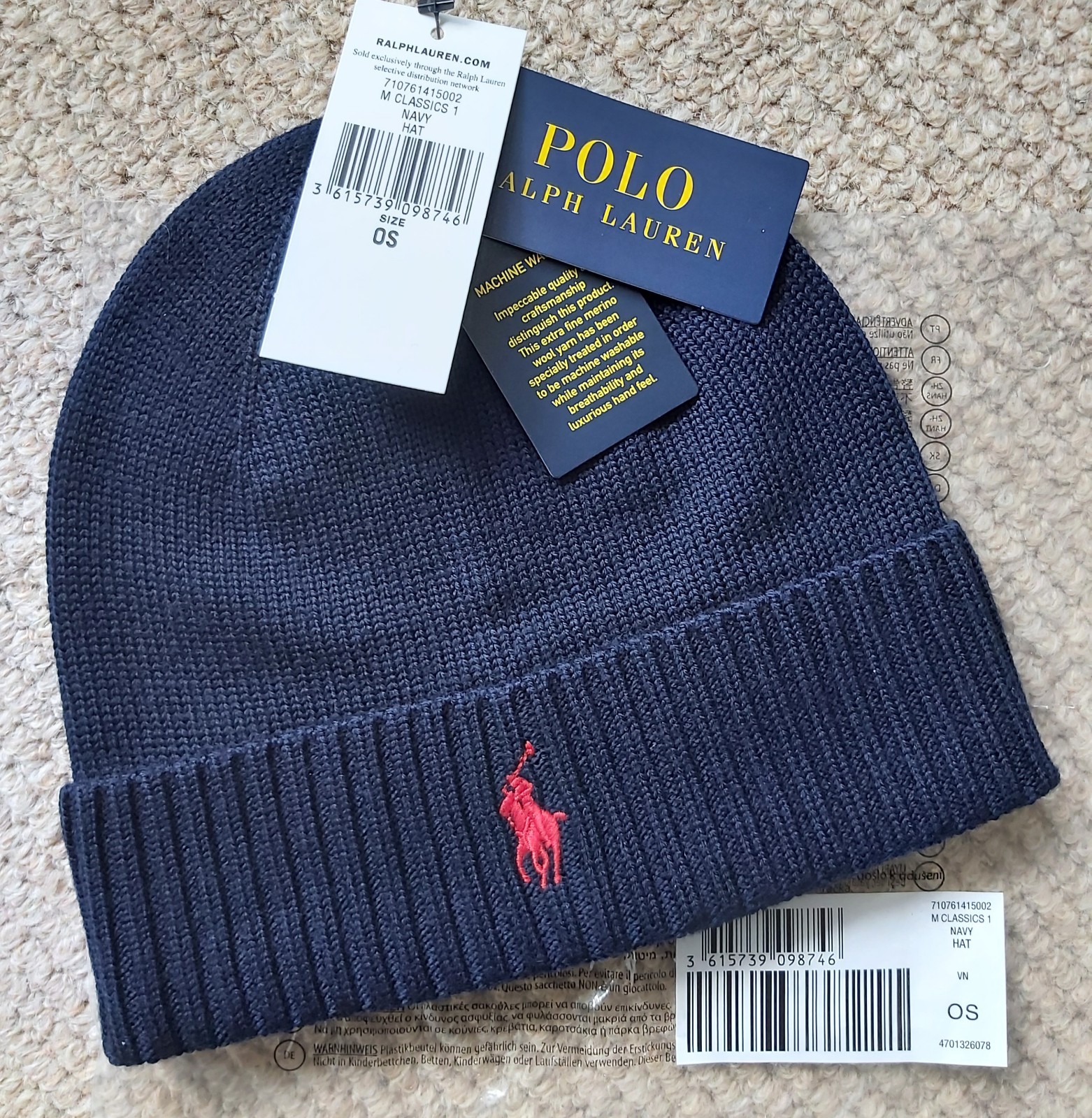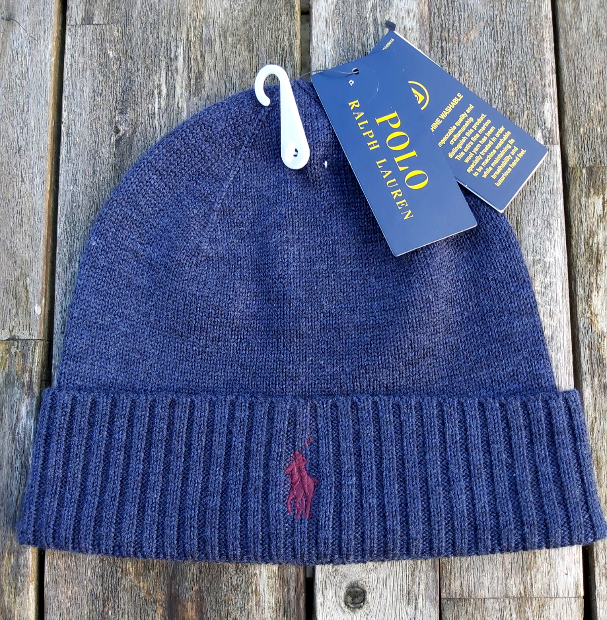 Genuine POLO RALPH LAUREN Navy MERINO WOOL BEANIE Hat Tag 449793448004 Ralp1