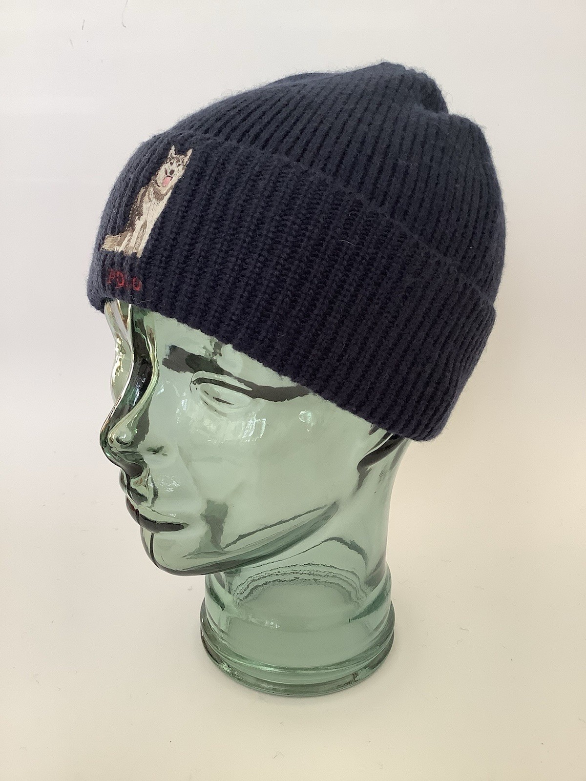 New Polo Ralph Lauren ‘Husky Dog’ Navy Blue Wool- & Acrylic-Rich Beanie