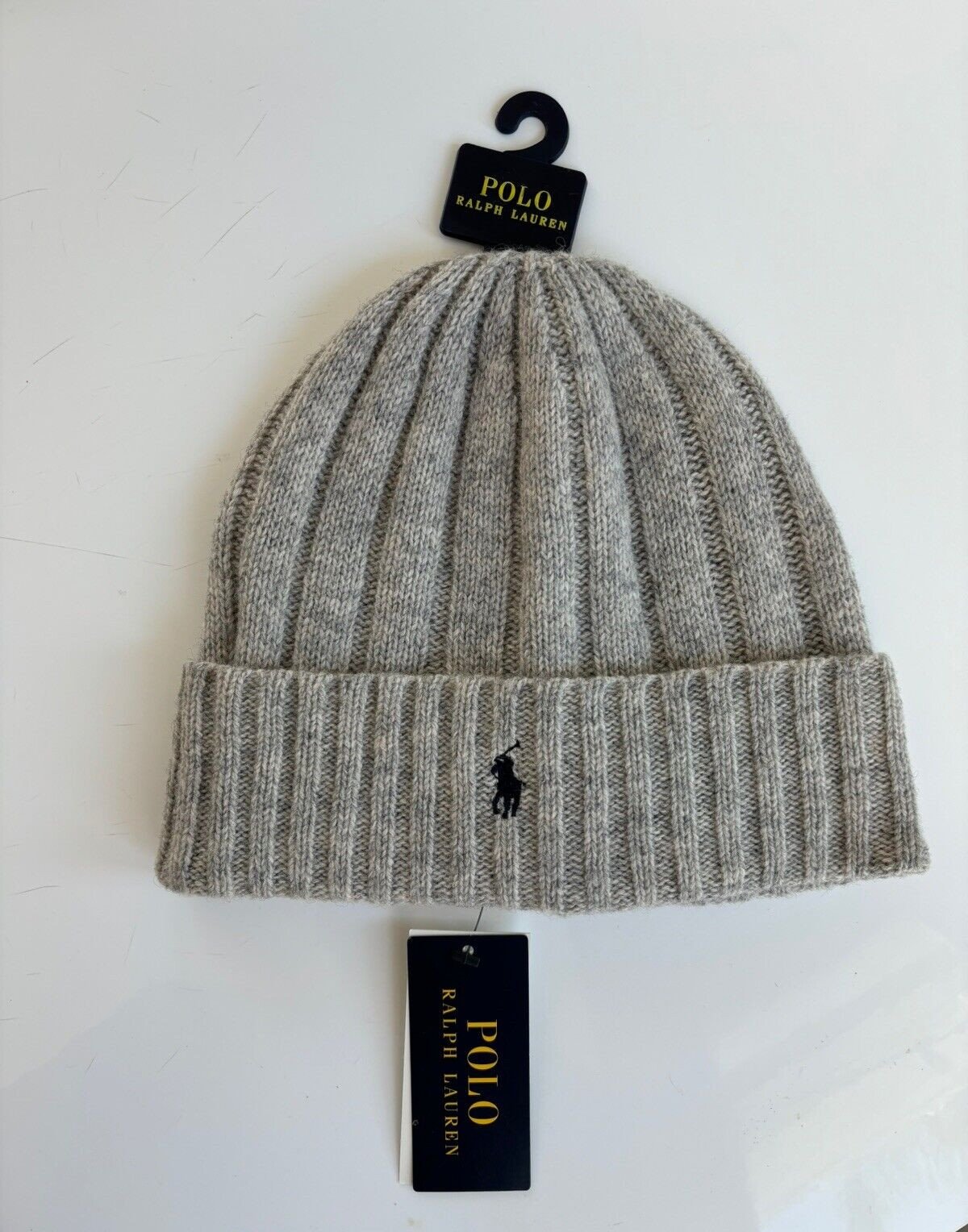 POLO RALPH LAUREN Men's Pony GRAY Wool-Blend Beanie Cuff rib-knit Hat