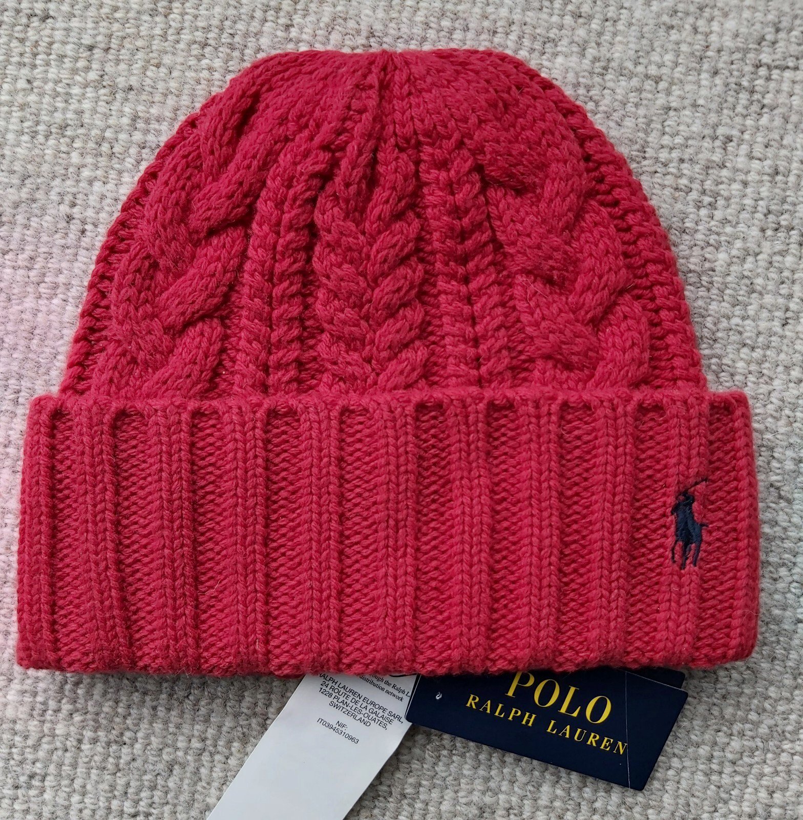 Genuine POLO RALPH LAUREN Red 25% WOOL Cable Knit BEANIE Hat 449900237002 Ralp1
