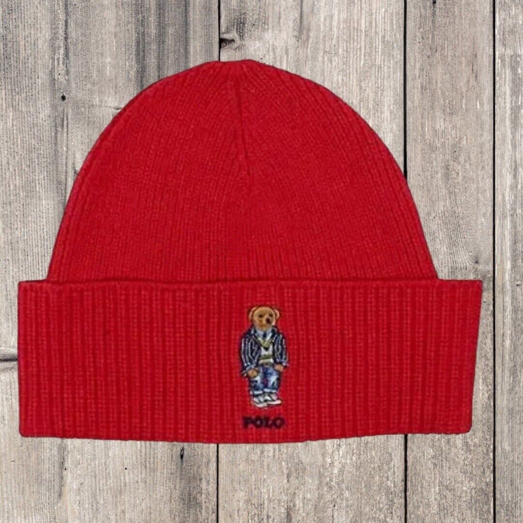 New Polo Ralph Lauren ‘Varsity Bear’ Red Wool- & Acrylic-Rich Beanie