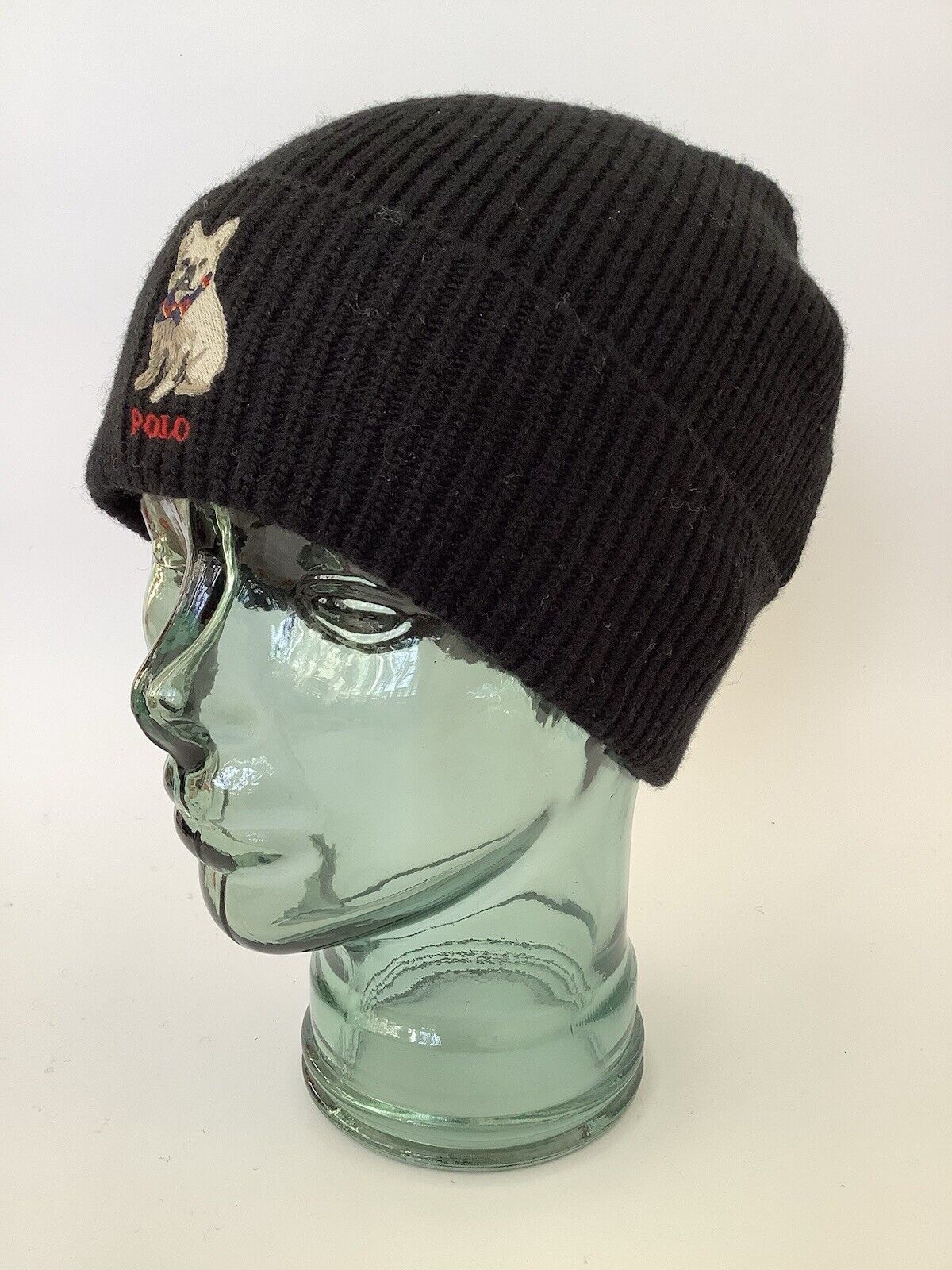 New Polo Ralph Lauren ‘Husky Dog’ Black Wool- & Acrylic-Rich Beanie