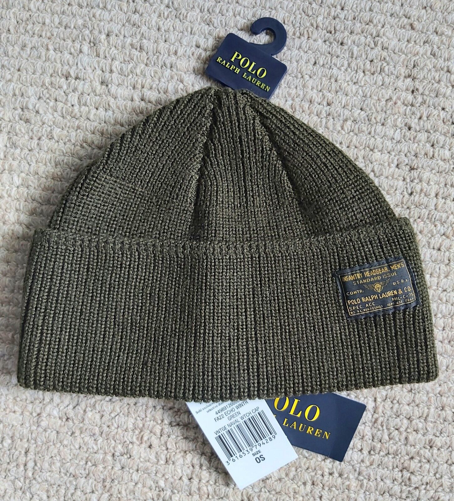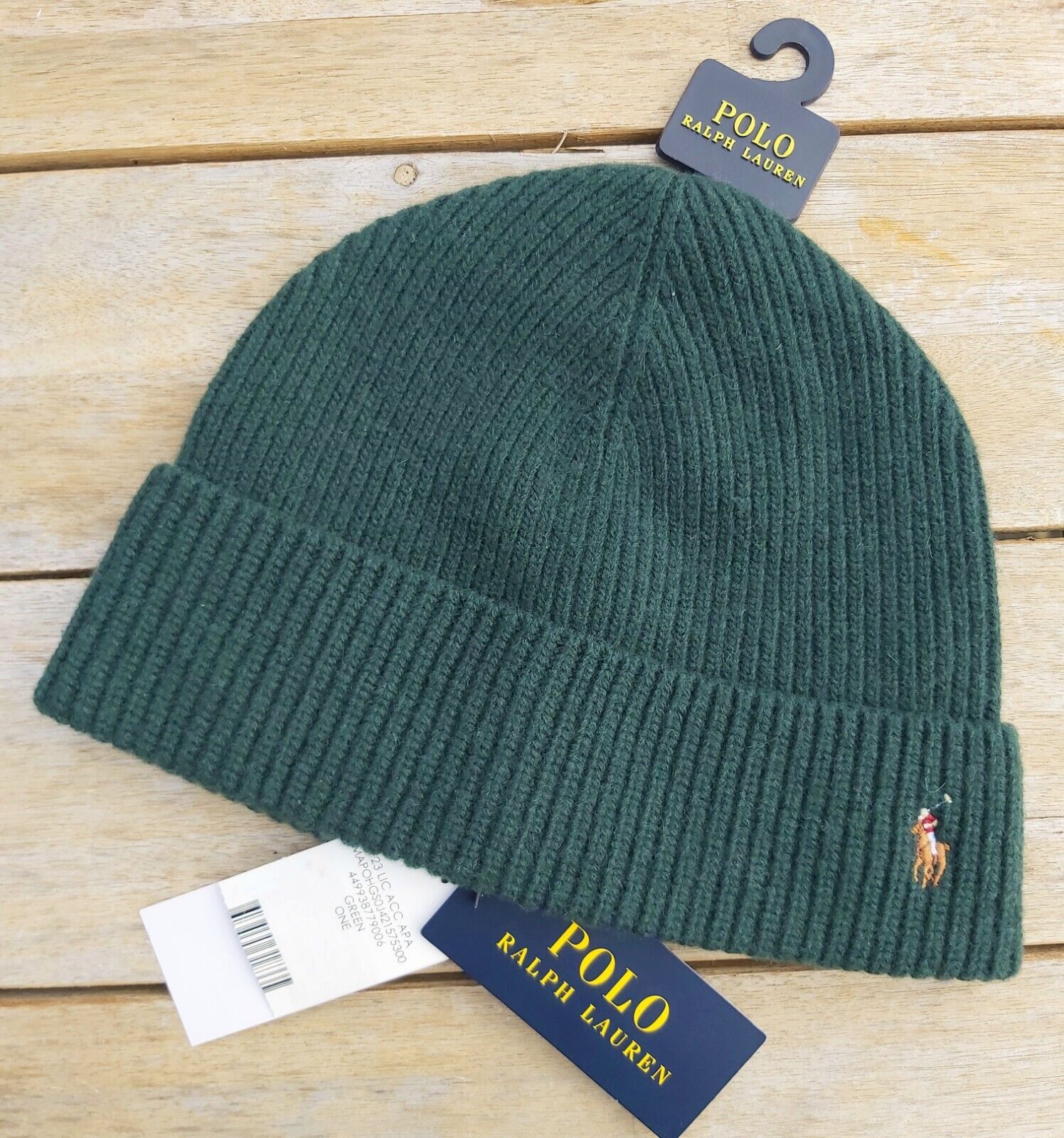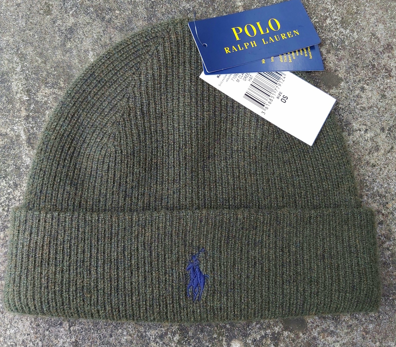 Genuine POLO RALPH LAUREN Green 80% WOOL BEANIE Hat Tag 449938779006 Ralp1