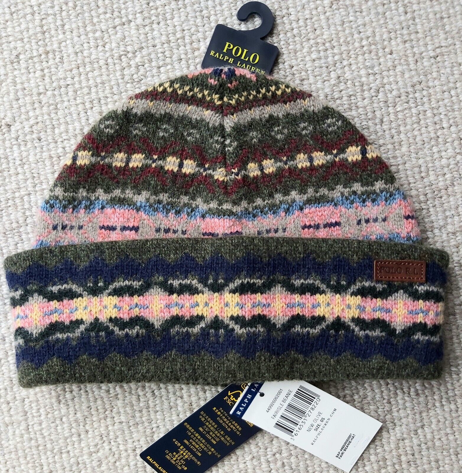 Genuine POLO RALPH LAUREN Olive Fairisle 65% Wool HAT BEANIE 449926062001 Ralp1