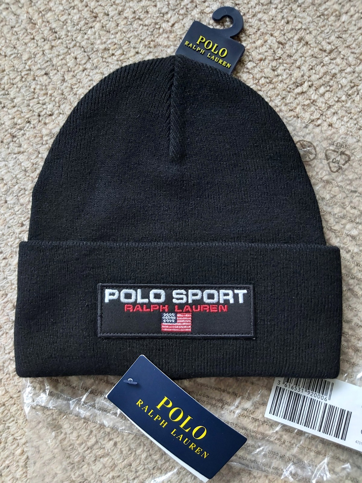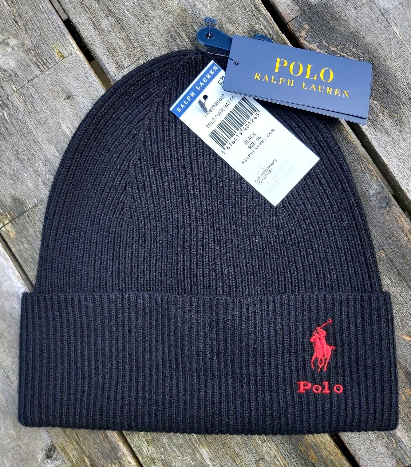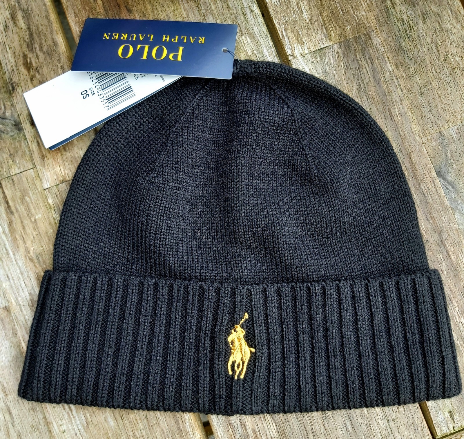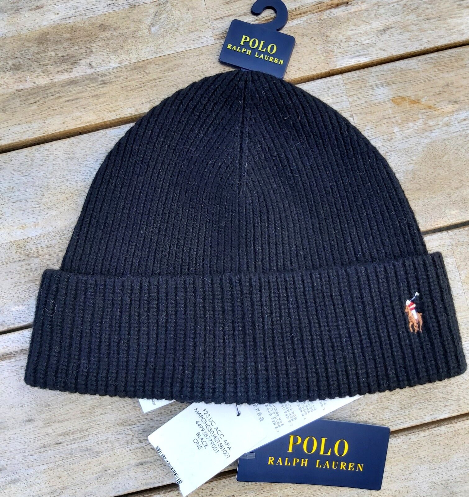 Genuine POLO RALPH LAUREN Black 80% WOOL BEANIE Hat Toque Tag 449938779001 Ralp1