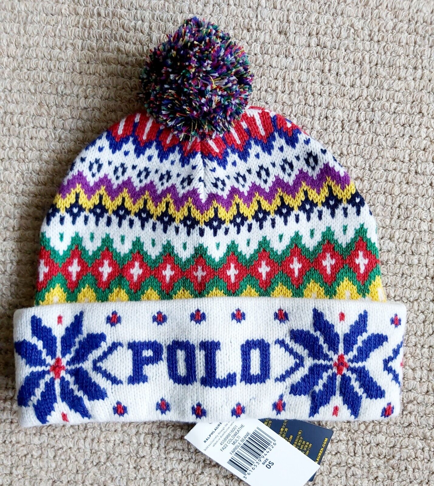 POLO RALPH LAUREN Fairisle 78% Wool SKI BOBBLE HAT BEANIE 455898816001 Ralp1
